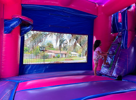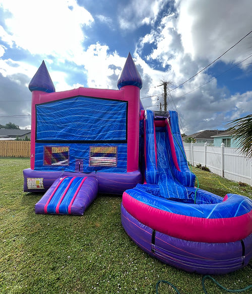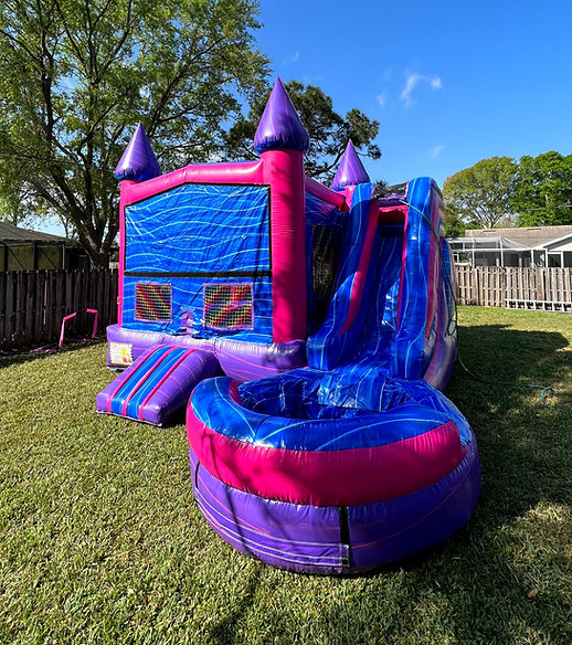 Bring the ultimate splash to your next party with this amazing Pink and Purple Combo Water Slide. This unit is the perfect solution for Florida's changing weather because it can be used as a water slide to beat the heat